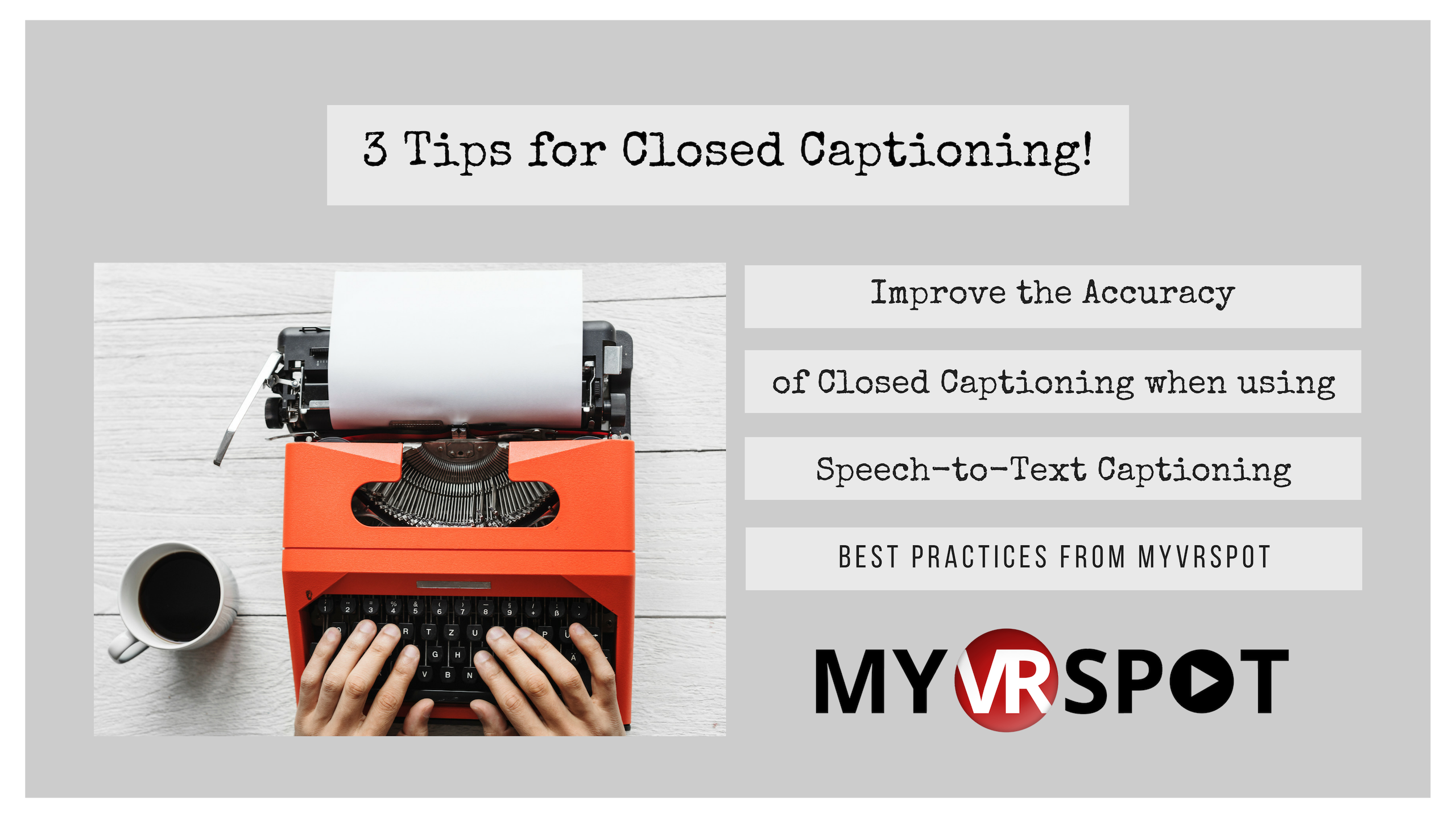 Michael Kessler2025-07-03T17:20:03+00:003 Tips to Improve the Accuracy of Closed Captioning When Using Speech-to-Text Captioning Best Practices from MyVRSpot Is poor audio quality or a regional dialect making your speech-to-text closed captioning cumbersome? Spend less time editing your caption files with these solutions--which don’t include changing your regional dialect. Audio Quality The most important factor in the quality of a caption file is the audio of the video. The culprit of poor audio in a video is typically from not using an external microphone. In certain situations it is fine to use the audio input from your camera, but [...]