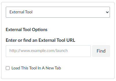 - Select External Tool in the dropdown and click Find.