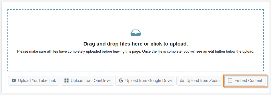 Already have content hosted somewhere else? Use the Embed Content option to display it inside MyVideoSpot — no need to upload a file.